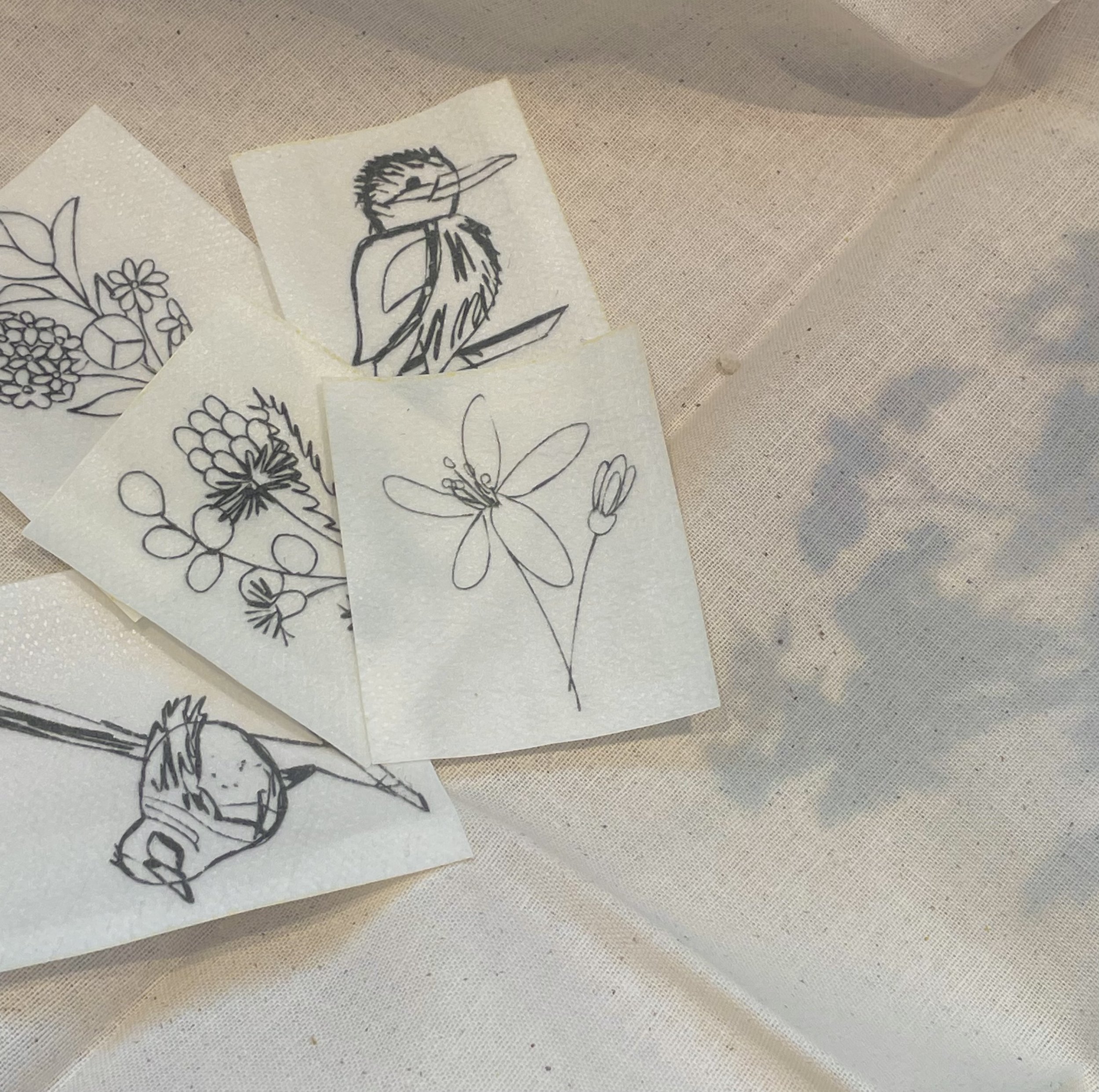 Every design begins with a moment of inspiration — usually something soft and beautiful I’ve seen in nature. A wildflower, a curious bird, a sunlit branch. I start by hand-sketching the design on paper, capturing the lines and shapes that caught my eye. Once the drawing feels right, I refine and digitize it so it can be transferred onto fabric. This is where the idea begins to take form — simple, organic, and uniquely mine.
